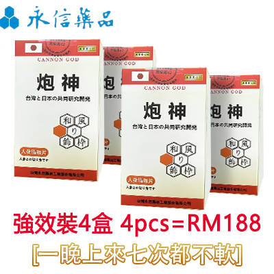 21 Minit Yang Lalu【限時促銷 】脱胎换茎,强悍重生!完美解決所有性功能障礙!永信藥業攜手アステラス製藥株式會共同合製 “炮神”登場!專為男性增強增粗根莖覺醒急成長快速成型! 僅需一粒想硬就硬,強勁十足 立馬生效! - 二療程 買二送二 共4瓶【限量199組】【炮神】,4pcs=RM188 --- 一晚上來七次都不軟!